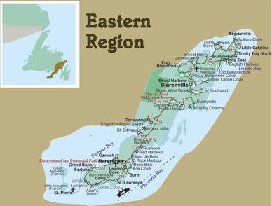 The Eastern Region is most famous for John Cabot’s landfall in 1497 at Bonavista; the 1929 Tidal Wave at Burin; the 500-million-year-old fossils at Fortune and the ferry service to St. Pierre, Miquelon (France).