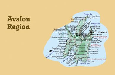 The Avalon Peninsula, carved by deep bays and located at the most eastern tip of Newfoundland; is home to the vibrant capital city of St. John’s; and the seaport Argentia, providing vehicle ferry service to North Sydney, Nova Scotia.